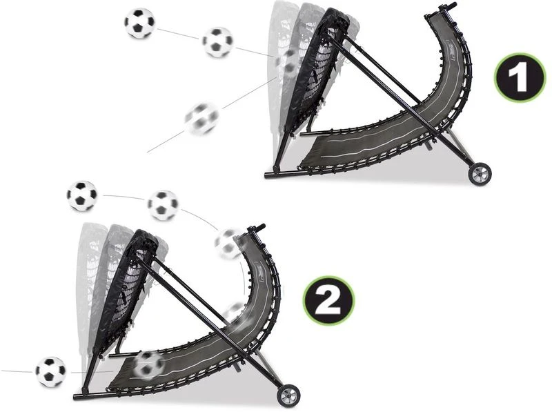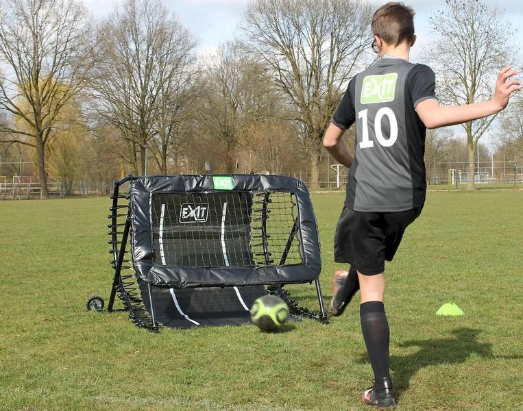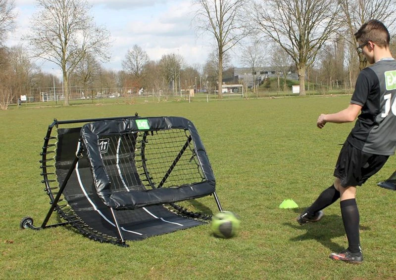 Deze rebounder is net wat anders dan alle anderen, want je kunt zelfs onder de rebounder door passen. Zo komt je bal met een boogje terug. Op deze manier kun jij je skills nog verder uitbreiden. Deze sportbuddy daagt je echt uit om te oefenen op de perfecte aanname. De EXIT Kickback Multi-Station is ideaal voor in de tuin, maar ook zeer handig voor voetbalverenigingen.