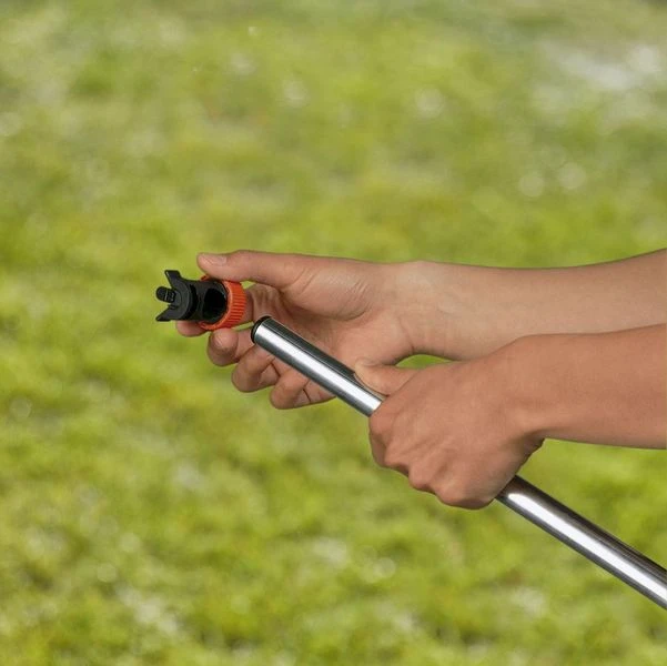 De Gardena douche is dankzij het driepootstatief gemakkelijk neer te zetten op iedere gewenste plek. De flexibele en afneembare douchekop, die is aangesloten op een 1,3 meter lange slang, geeft je hetzelfde douchegemak als de douche in je badkamer.