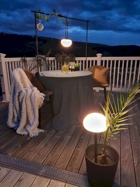 Deze buitenlamp van Nordlux heeft een ingebouwde batterij en is daarmee op elke gewenste plek in de tuin te plaatsen. Daarnaast is de lichtsterkte eenvoudig in te stellen op drie niveaus om de ideale sfeer te creëren. De batterij gaat maximaal zo’n 5 uur mee op vol vermogen en zelfs langer als je de lamp alleen voor sfeerverlichting gebruikt. Daarnaast is de batterij eenvoudig op te laden via een USB-aansluiting.