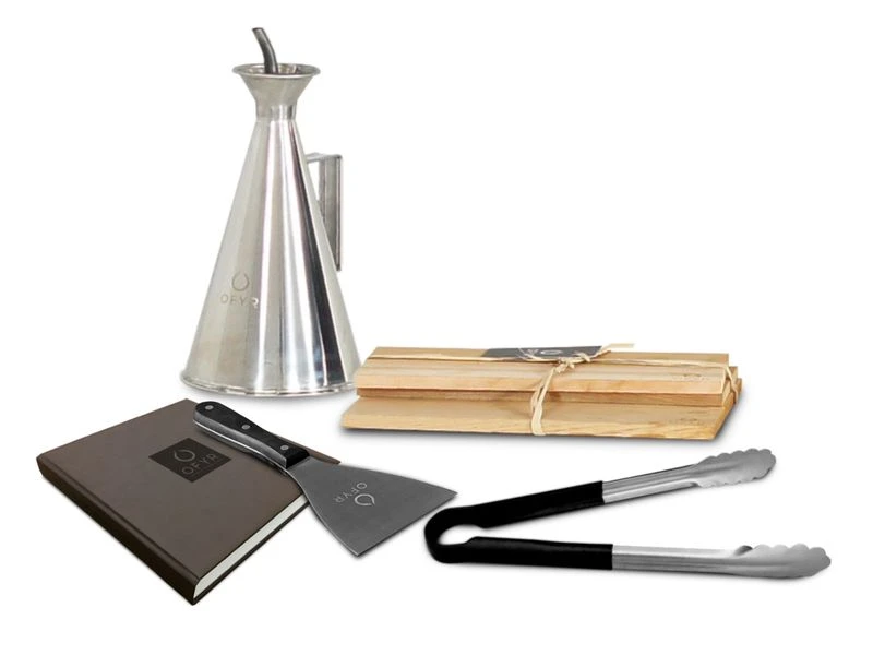 Dit OFYR Pro startpakket bevat volgens ons alles om direct aan de slag te kunnen met je OFYR vuurschaal. Met de spatel en tang uit dit pakket heb je al het basis kookgerei meteen in huis. Uit het kookboek haal je inspiratie voor gerechten speciaal voor de OFYR vuurschaal. En met de rookplankjes til je jouw gerechten meteen naar een hoger niveau met een heerlijke rooksmaak. Kortom, deze set bevat alle basisproducten die je nodig hebt bij jouw vuurschaal, dus steek die vuurschaal maar meteen aan!