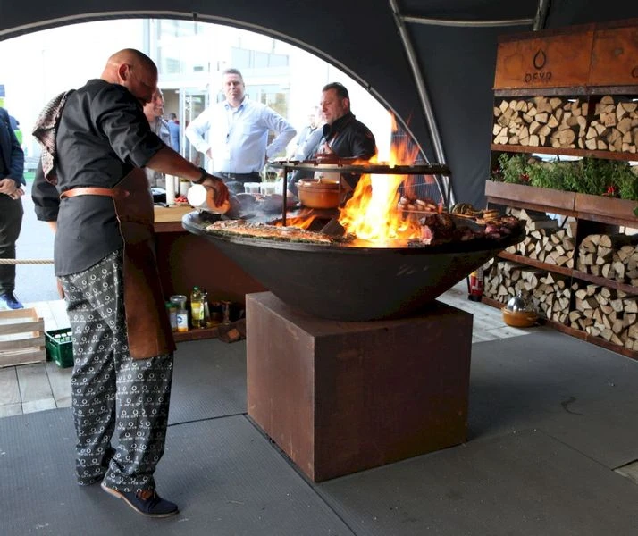 Mooie veelzijdige set als toevoeging van de OFYR XL kooktoestellen. Horizontale spiezen set, ronde grillplaat en hoge standaard voor de juiste bereiding van het voedsel.