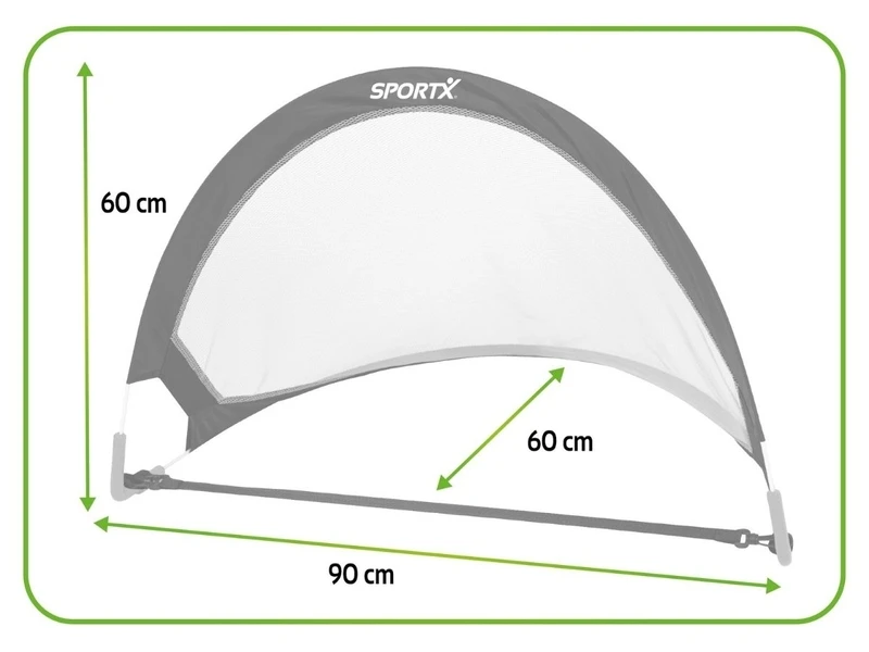 Deze SportX pop-up doeltjes zijn 90 x 60 x 60 cm (l x b x h) en licht van gewicht. Hierdoor zijn ze makkelijk te verplaatsen en dus ideaal voor in de achtertuin, op vakantie of om mee te nemen naar een speelveldje. Ze hebben een stoer uiterlijk door het zwarte omhulsel en het groene net
